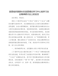 (四中)县委组织部部长在县委理论学习中心组学习全会精神研讨会上的发言