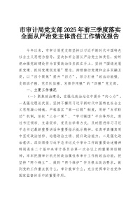 市审计局党支部2025年前三季度落实全面从严治党主体责任工作情况报告