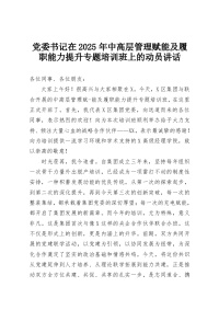 党委书记在2025年中高层管理赋能及履职能力提升专题培训班上的动员讲话