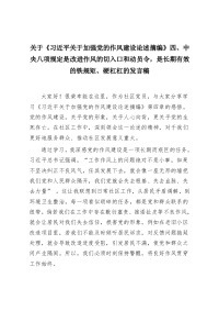 关于《习近平关于加强党的作风建设论述摘编》四、中央八项规定是改进作风的切入口和动员令,是长期有效的铁规矩、硬杠杠的发言稿