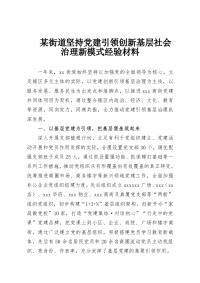 某街道坚持党建引领创新基层社会治理新模式经验材料