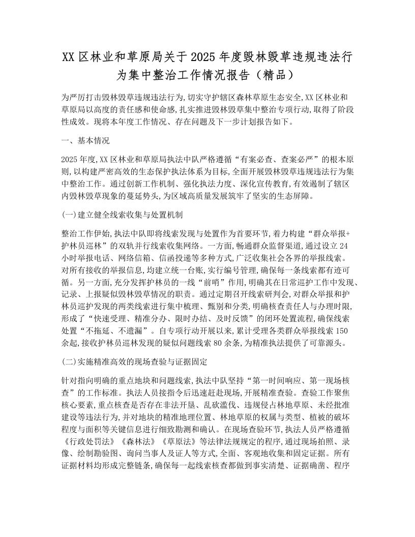 XX区林业和草原局关于2025年度毁林毁草违规违法行为集中整治工作情况报告(精品)