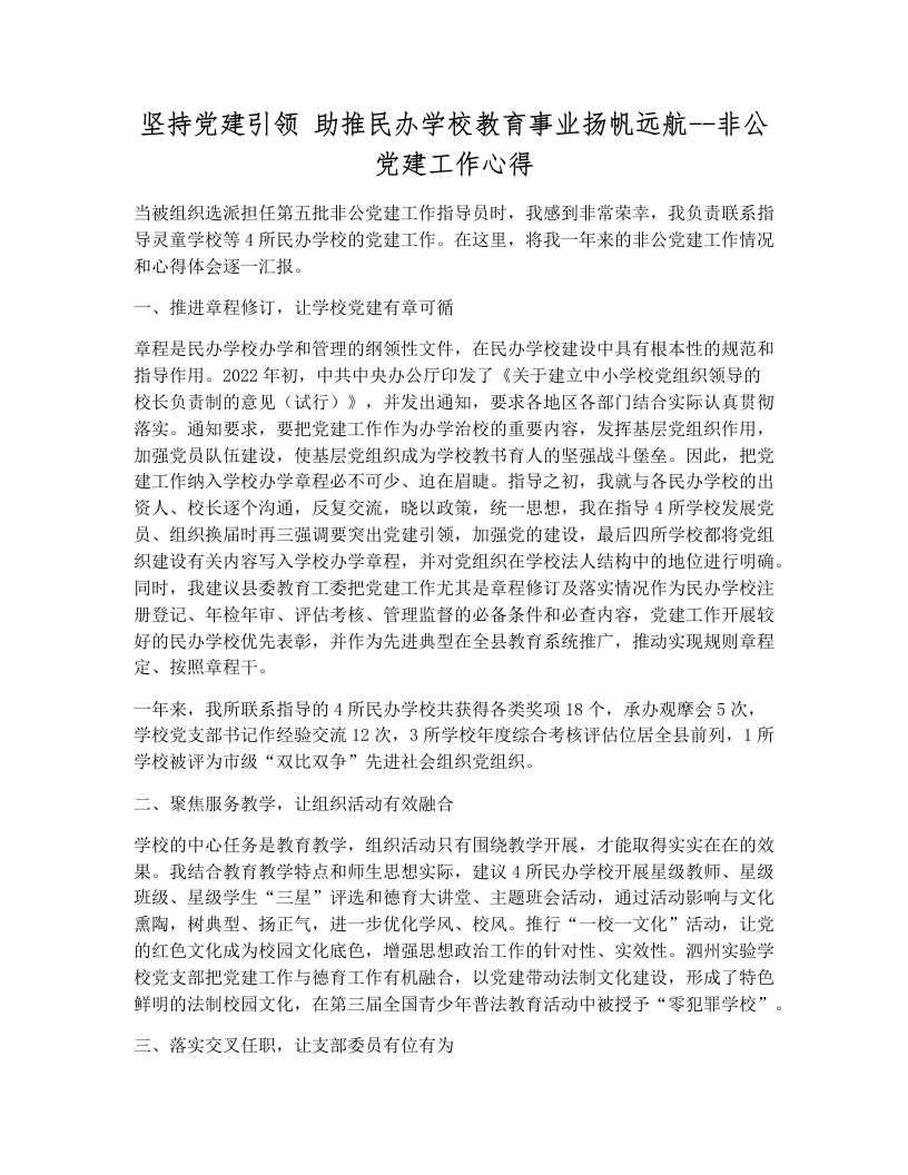坚持党建引领 助推民办学校教育事业扬帆远航--非公党建工作心得