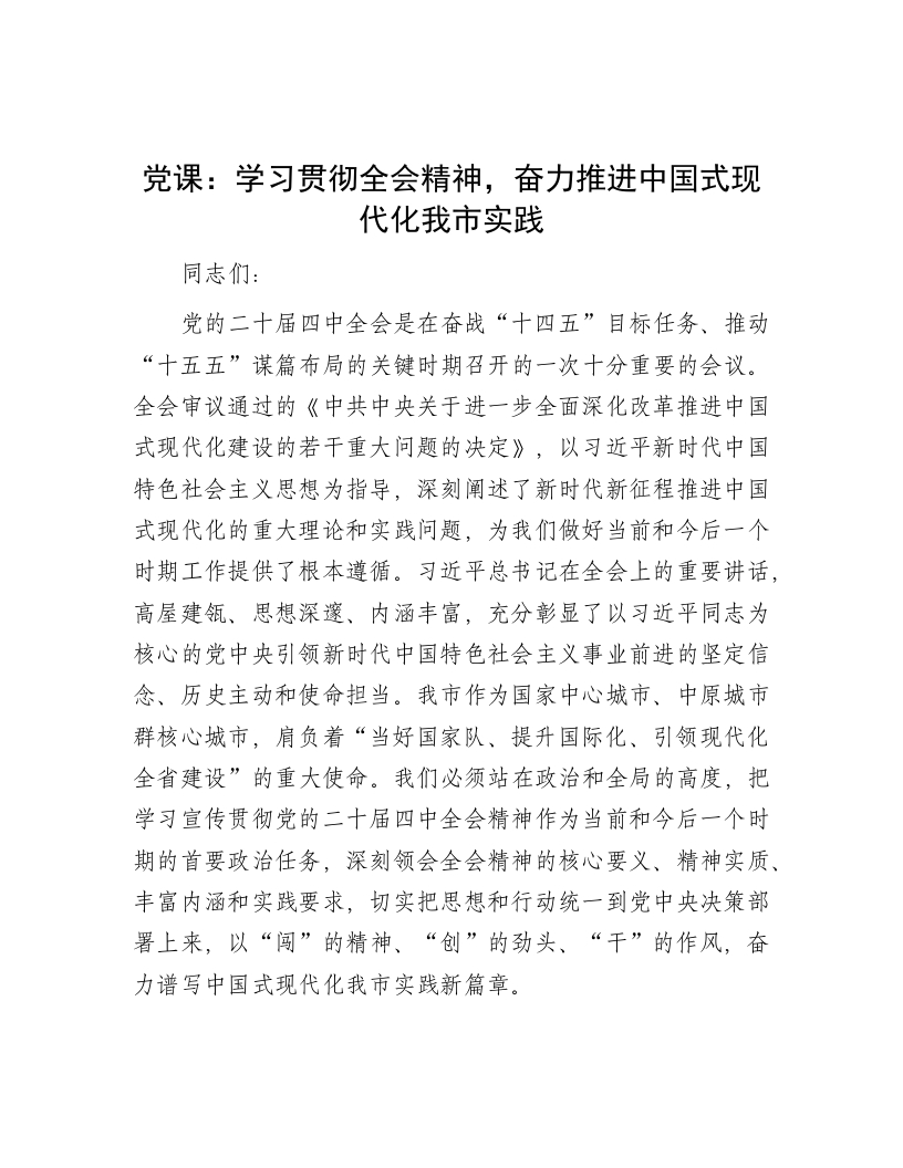 党课:学习贯彻全会精神,奋力推进中国式现代化我市实践