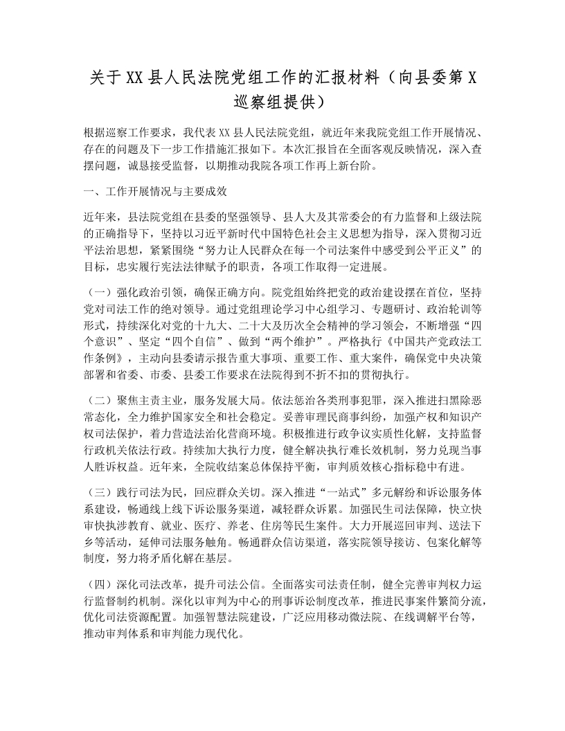 关于XX县人民法院党组工作的汇报材料(向县委第X巡察组提供)
