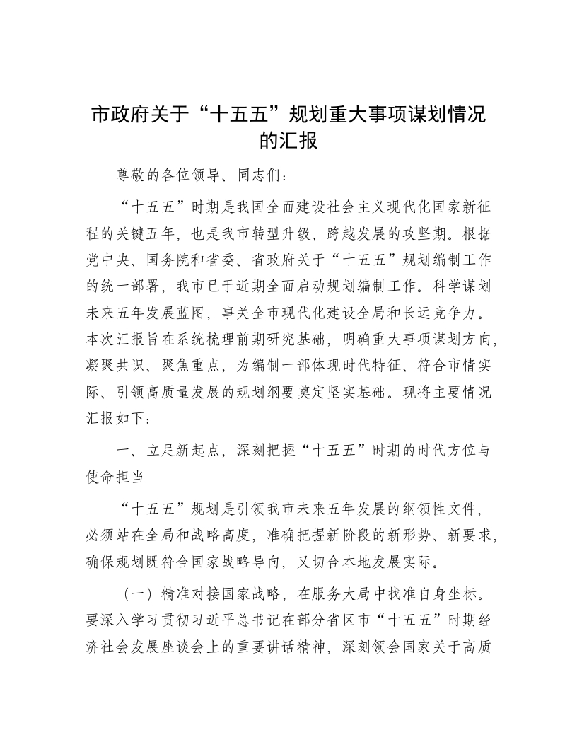 市政府关于“十五五”规划重大事项谋划情况的汇报