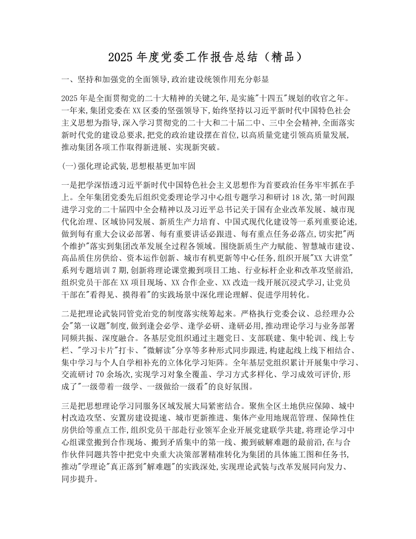 首页热门分类工作总结2025年度党委工作报告总结(精品)