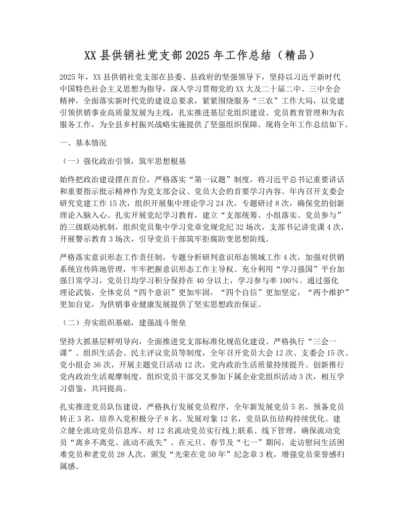 XX县供销社党支部2025年工作总结(精品)