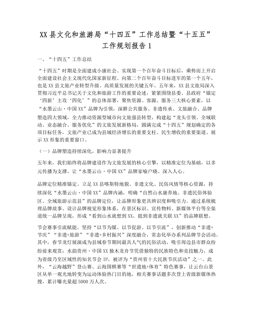XX县文化和旅游局“十四五”工作总结暨“十五五”工作规划报告1