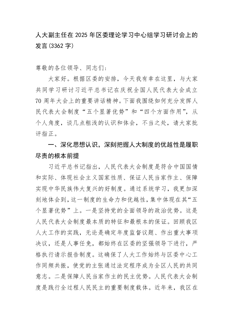人大副主任在2025年区委理论学习中心组学习研讨会上的发言(3362字)