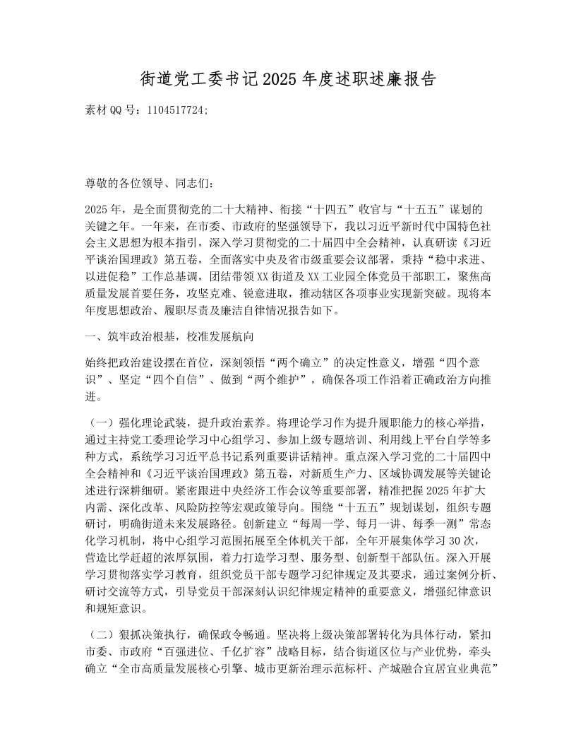 首页报告总结述职述廉街道党工委书记2025年度述职述廉报告