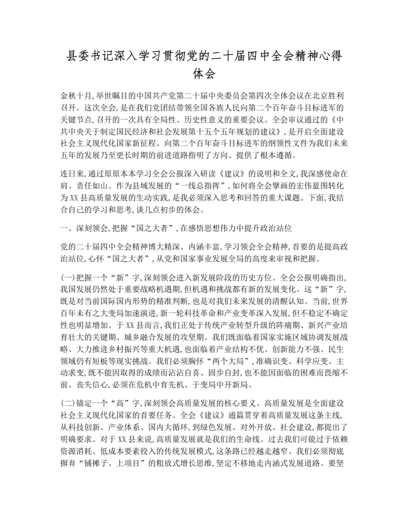 首页感悟体会心得体会县委书记深入学习贯彻党的二十届四中全会精神心得体会