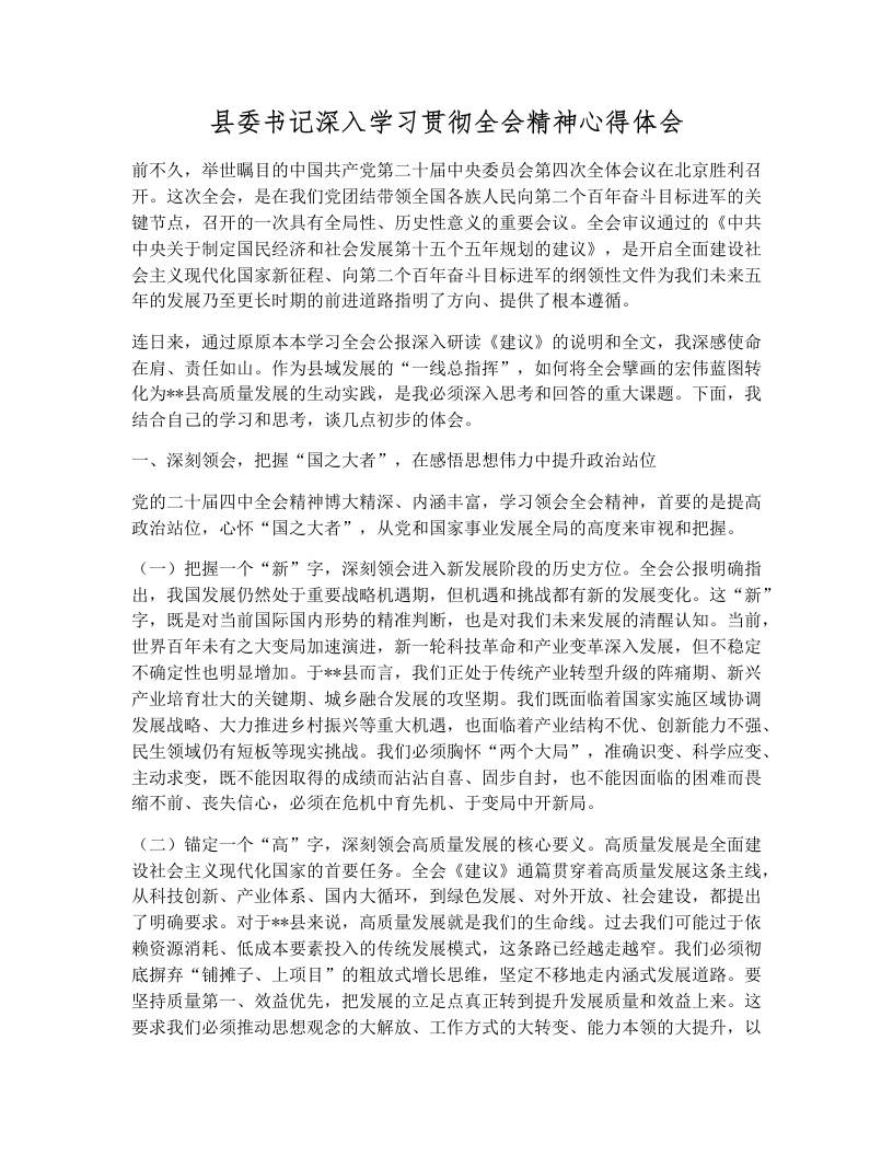首页感悟体会心得体会县委书记深入学习贯彻全会精神心得体会