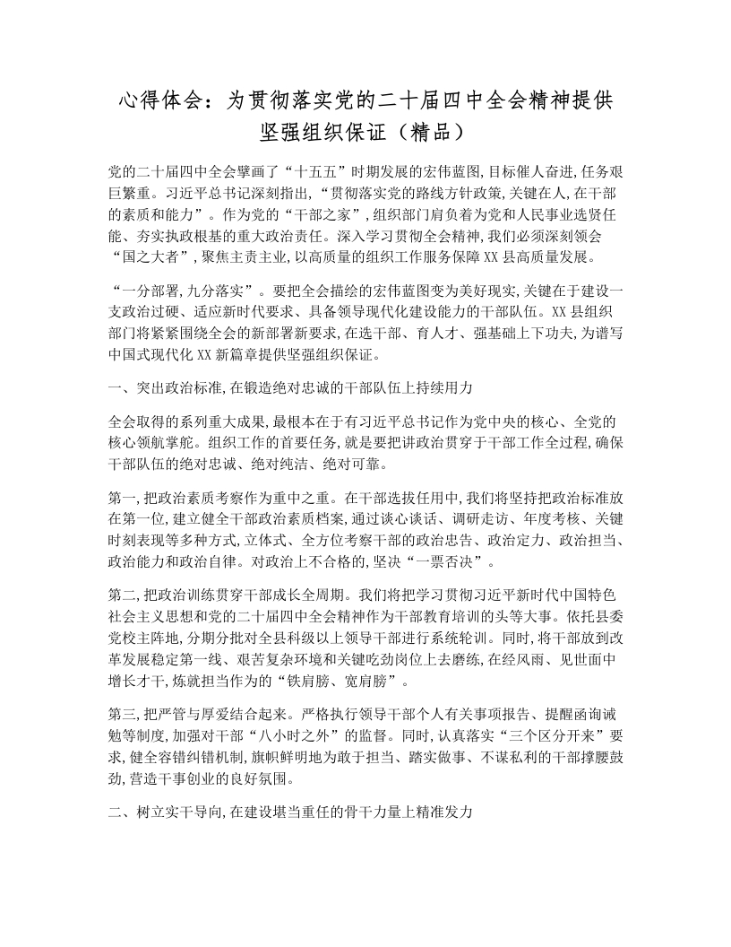 心得体会:为贯彻落实党的二十届四中全会精神提供坚强组织保证(精品)