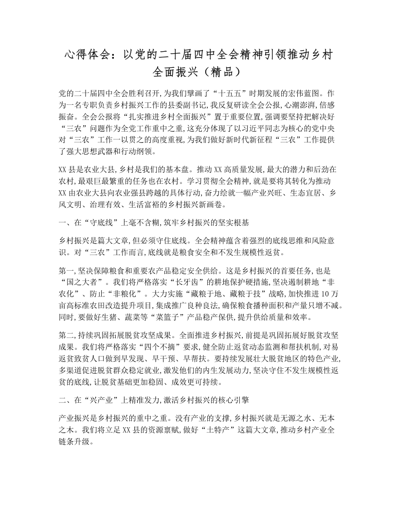 心得体会:以党的二十届四中全会精神引领推动乡村全面振兴(精品)