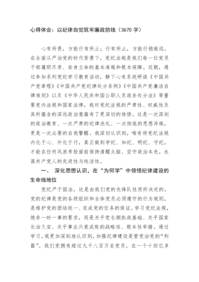 心得体会:以纪律自觉筑牢廉政防线(3670字)