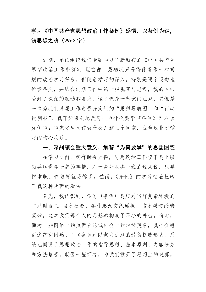 学习《中国共产党思想政治工作条例》感悟:以条例为纲,铸思想之魂(2963字)
