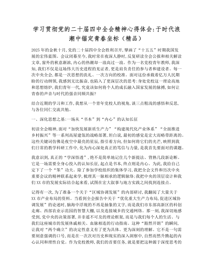 学习贯彻党的二十届四中全会精神心得体会:于时代浪潮中锚定青春坐标(精品)
