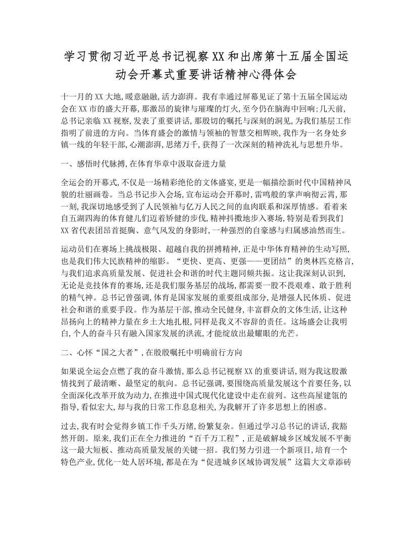 学习贯彻习近平总书记视察XX和出席第十五届全国运动会开幕式重要讲话精神心得体会
