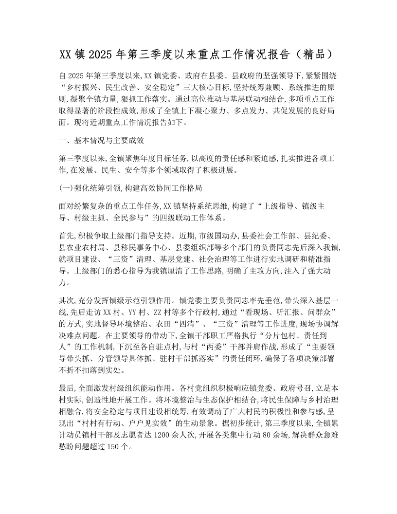 XX镇2025年第三季度以来重点工作情况报告(精品)