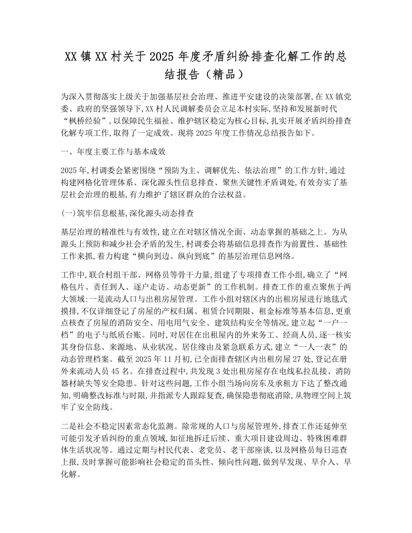 XX镇XX村关于2025年度矛盾纠纷排查化解工作的总结报告(精品)
