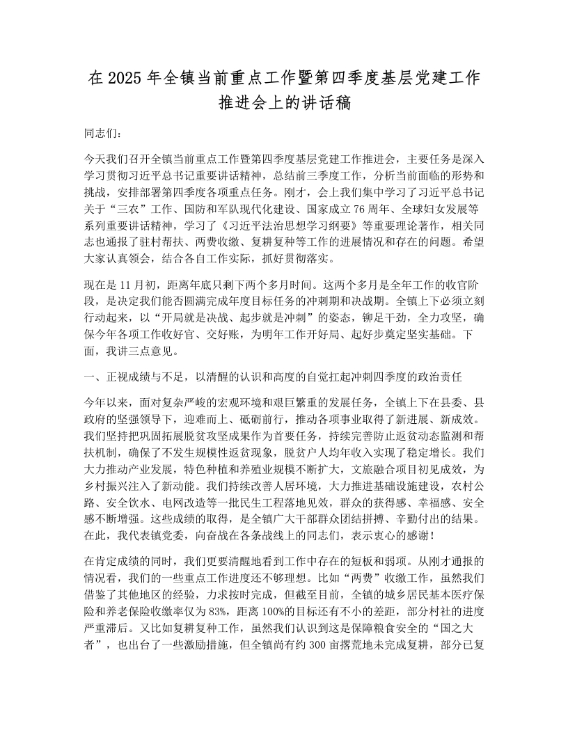 在2025年全镇当前重点工作暨第四季度基层党建工作推进会上的讲话稿