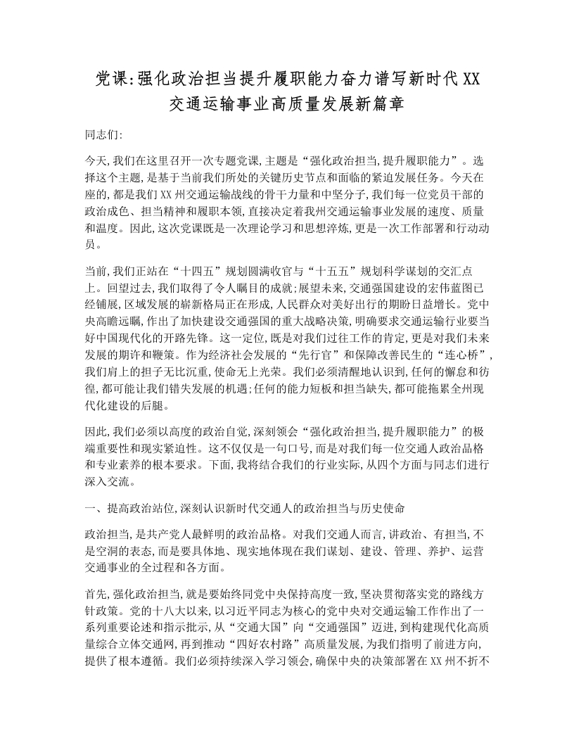 党课:强化政治担当提升履职能力奋力谱写新时代XX交通运输事业高质量发展新篇章