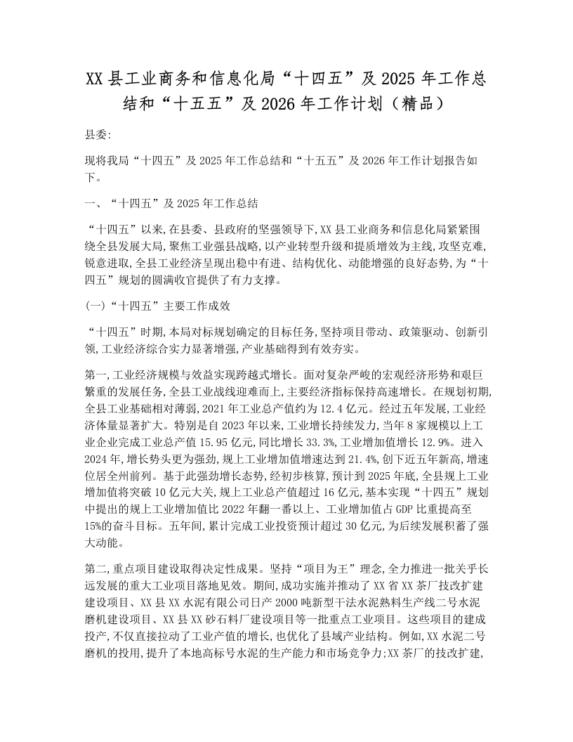 XX县工业商务和信息化局“十四五”及2025年工作总结和“十五五”及2026年工作计划(精品)