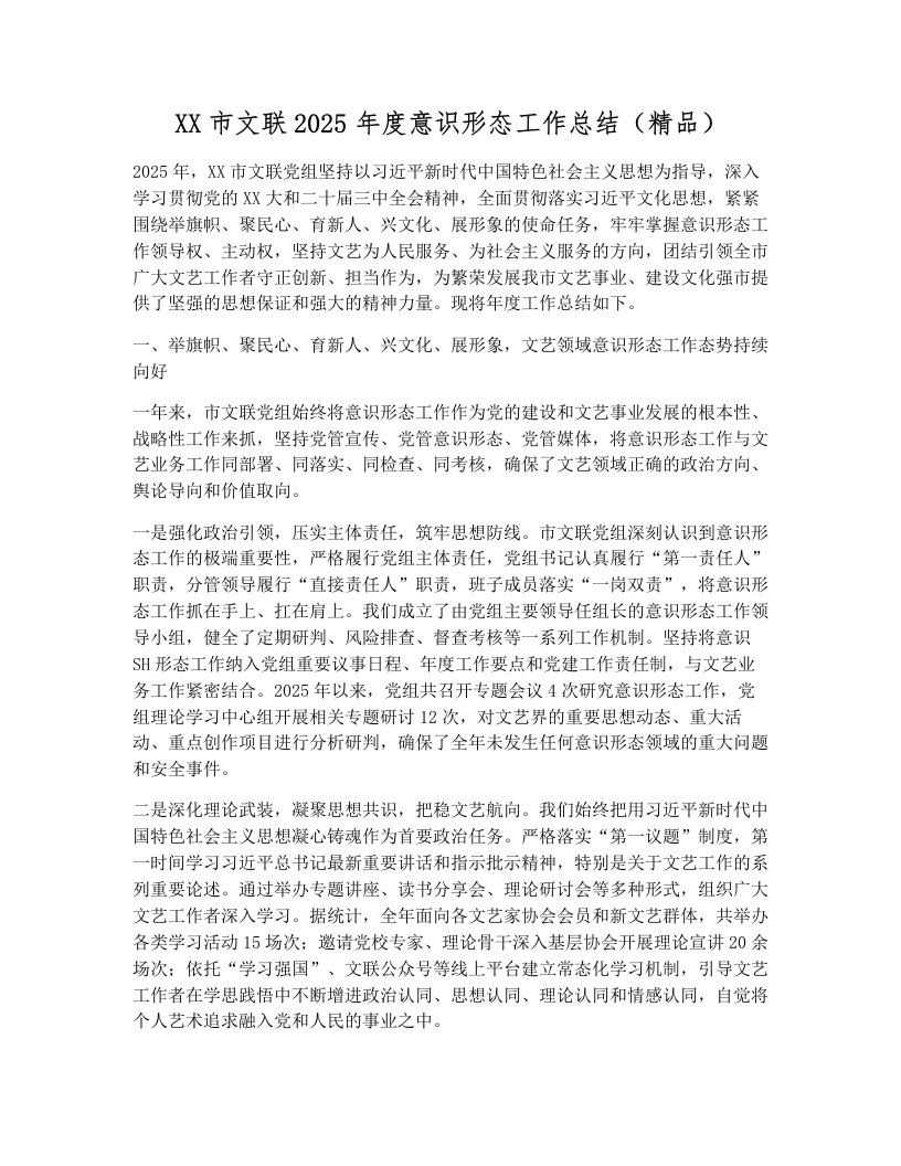 首页热门分类工作总结XX市文联2025年度意识形态工作总结(精品)