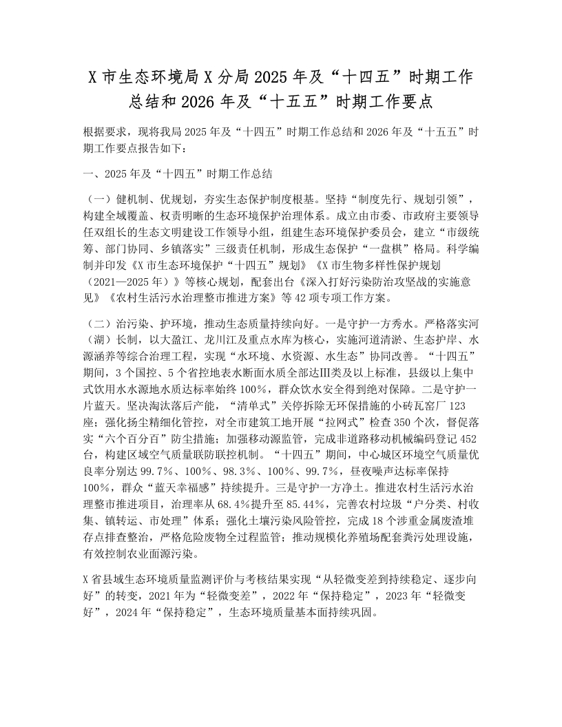 X市生态环境局X分局2025年及“十四五”时期工作总结和2026年及“十五五”时期工作要点