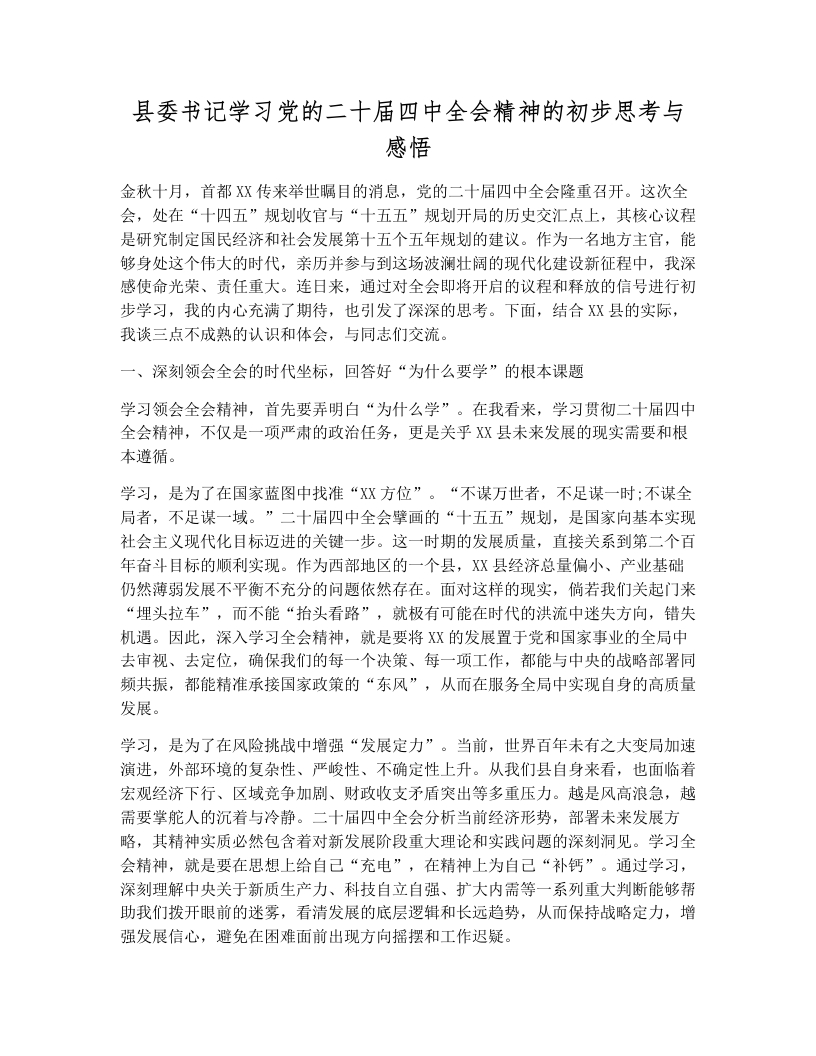 县委书记学习党的二十届四中全会精神的初步思考与感悟