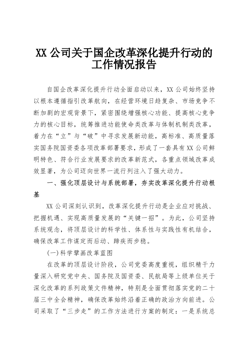 首页国企银行专区国企材料XX公司关于国企改革深化提升行动的工作情况报告