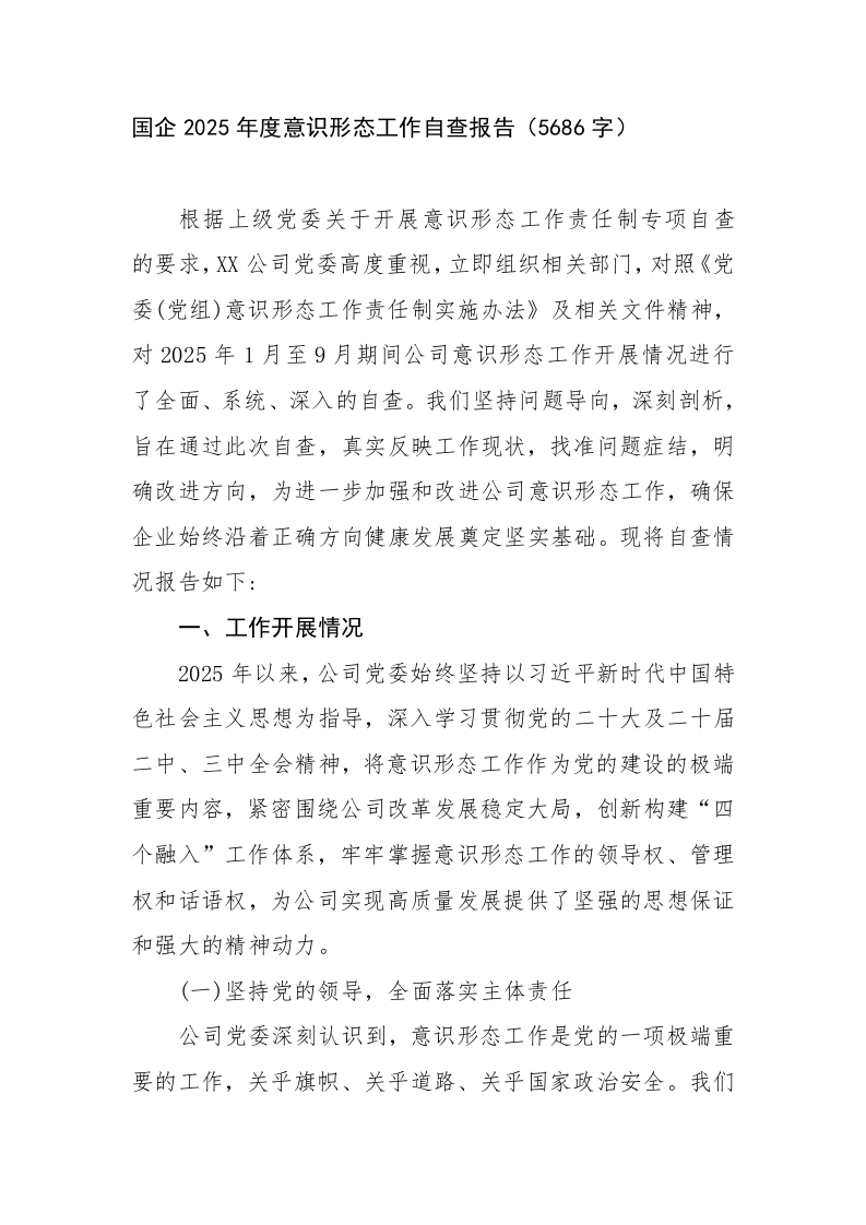 首页国企银行专区国企材料国企2025年度意识形态工作自查报告(5686字)