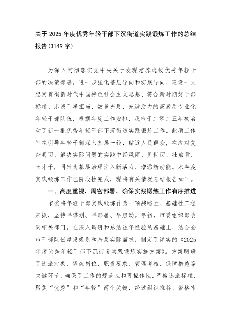 关于2025年度优秀年轻干部下沉街道实践锻炼工作的总结报告(3149字)