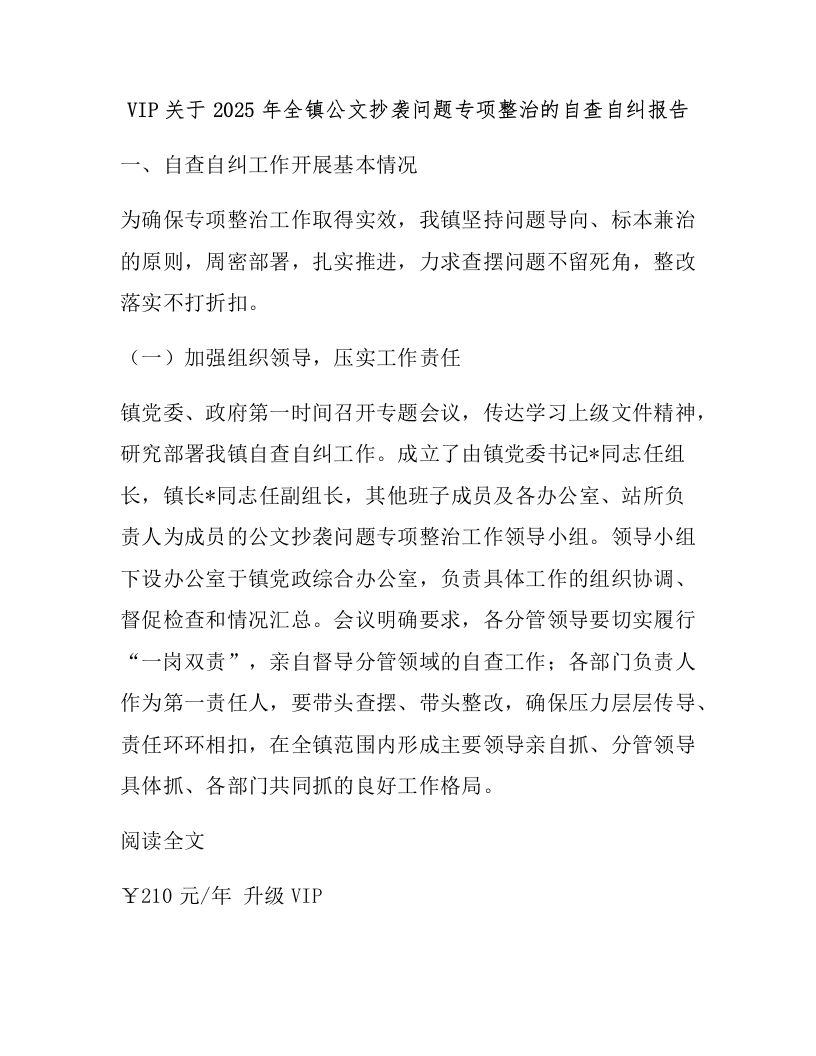 关于2025年全镇公文抄袭问题专项整治的自查自纠报告
