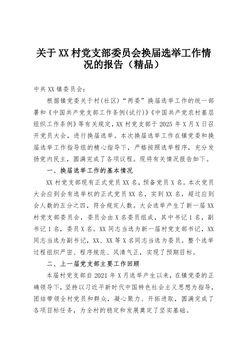 关于XX村党支部委员会换届选举工作情况的报告(精品)