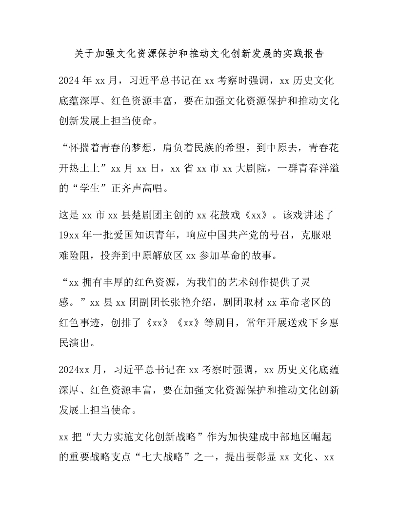 首页报告总结报告总结关于加强文化资源保护和推动文化创新发展的实践报告