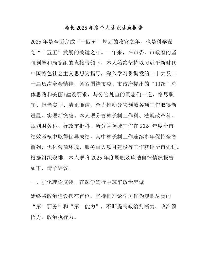 首页报告总结报告总结局长2025年度个人述职述廉报告