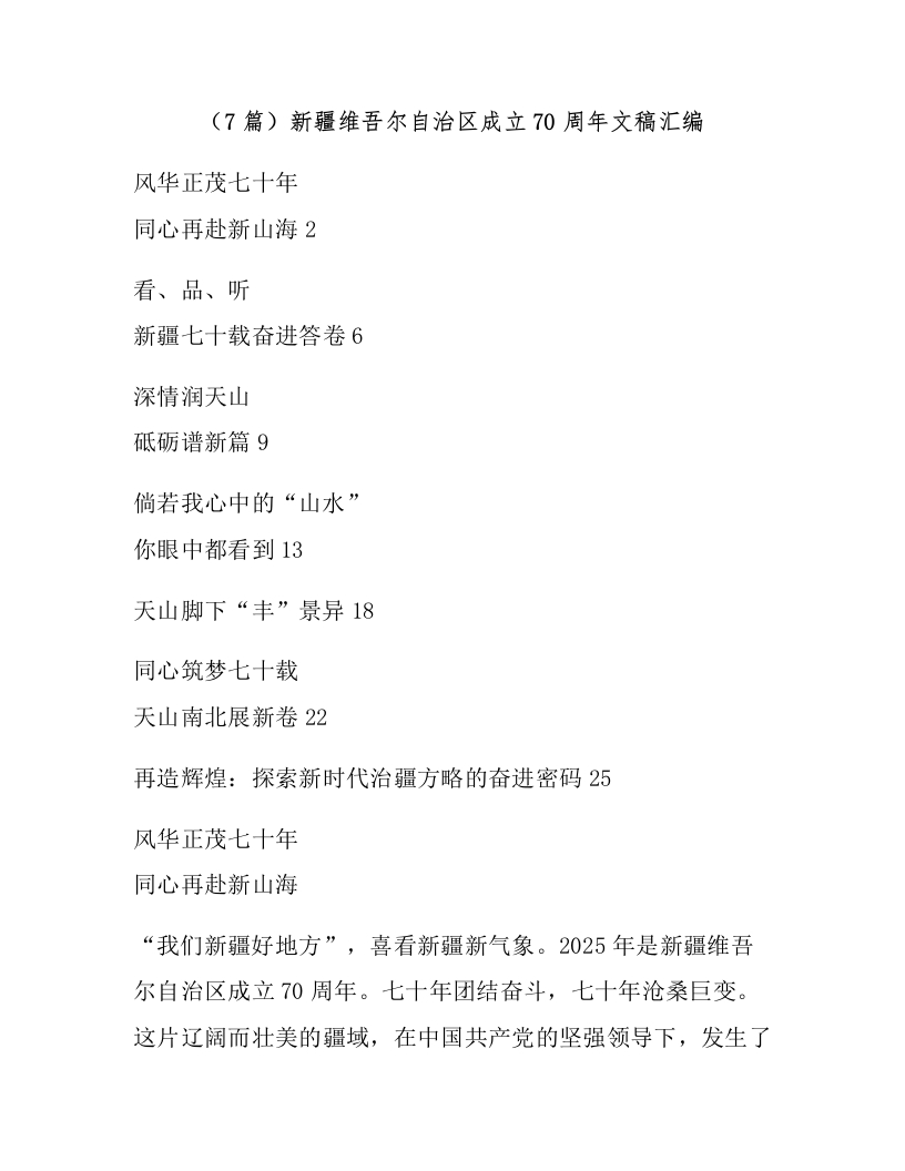 首页材料汇编综合材料(7篇)新疆维吾尔自治区成立70周年文稿汇编