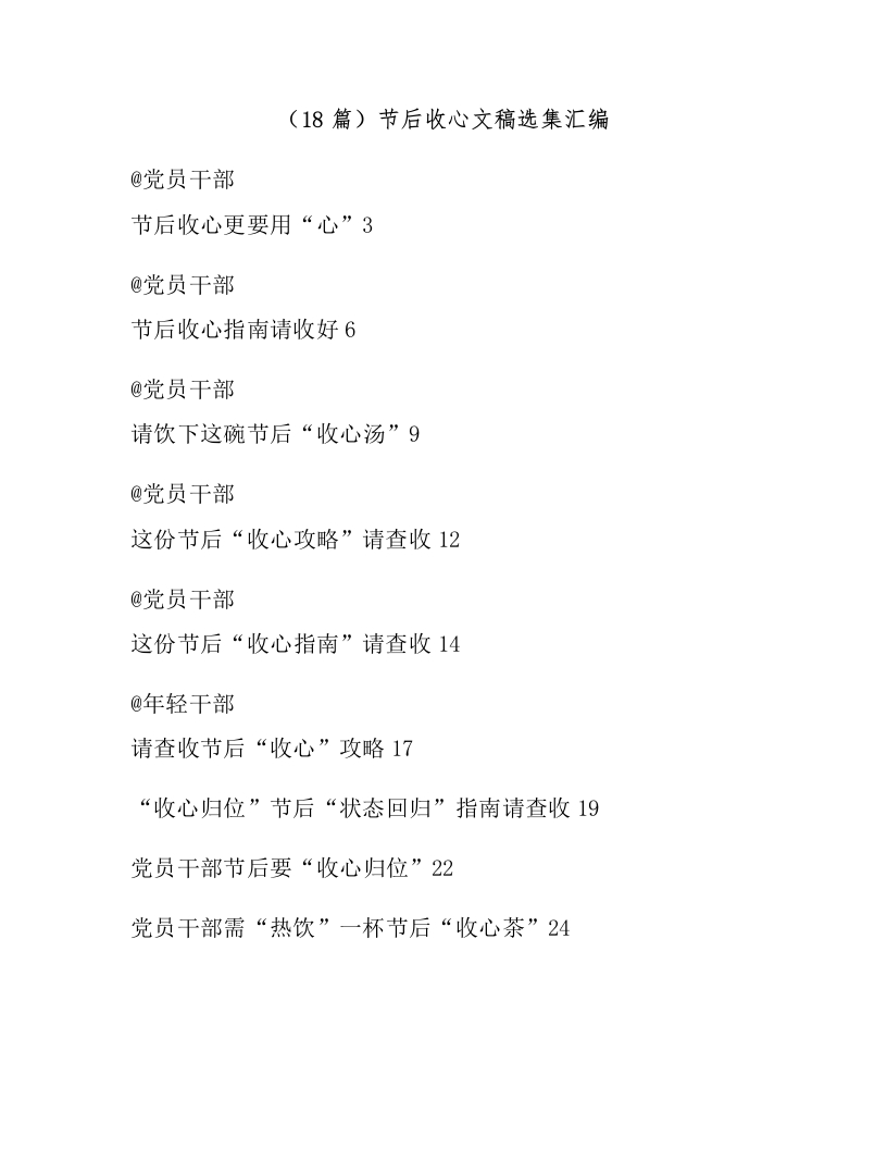 首页材料汇编综合材料(18篇)节后收心文稿选集汇编