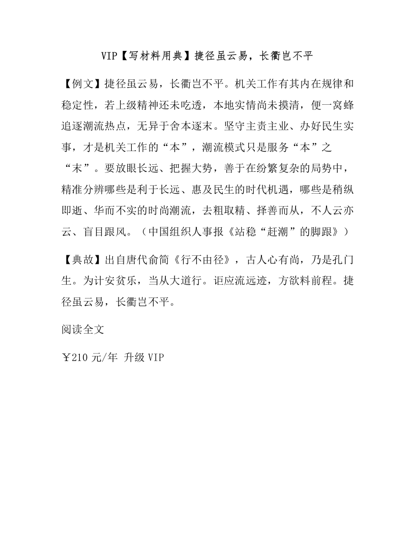首页材料汇编综合材料【写材料用典】捷径虽云易,长衢岂不平