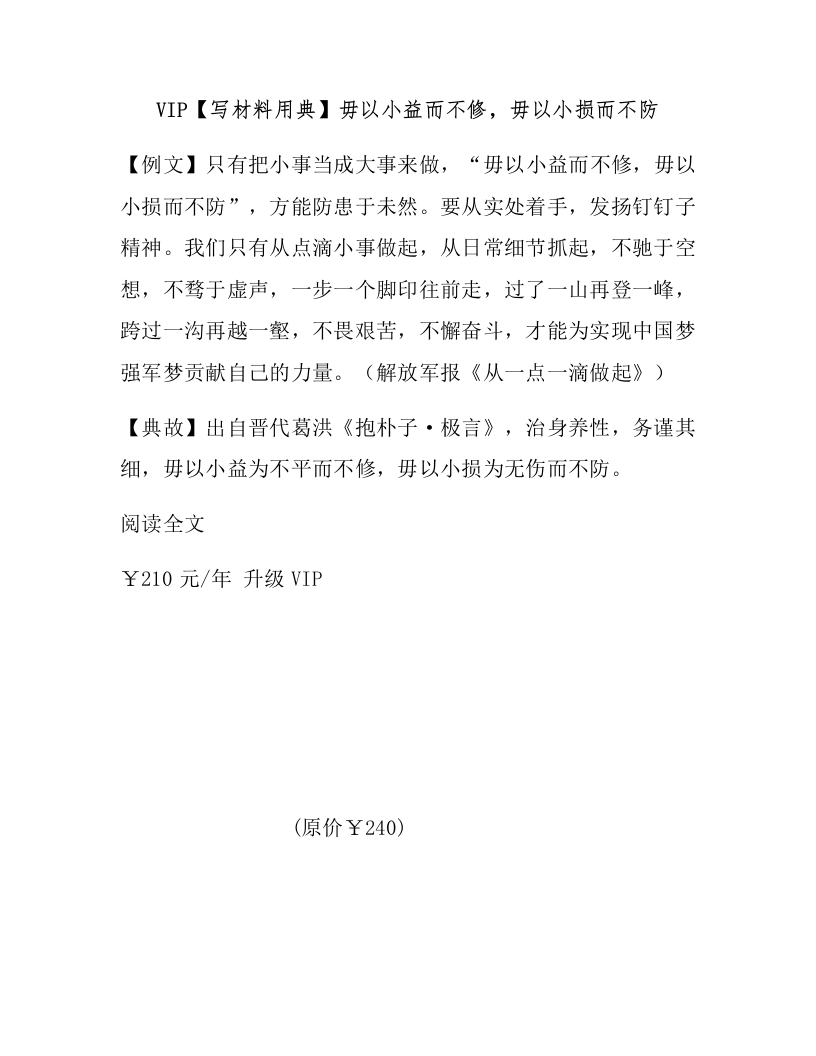 首页材料汇编综合材料【写材料用典】毋以小益而不修,毋以小损而不防