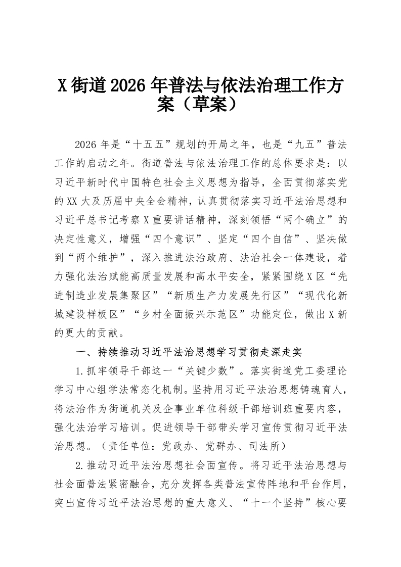 X街道2026年普法与依法治理工作方案(草案)