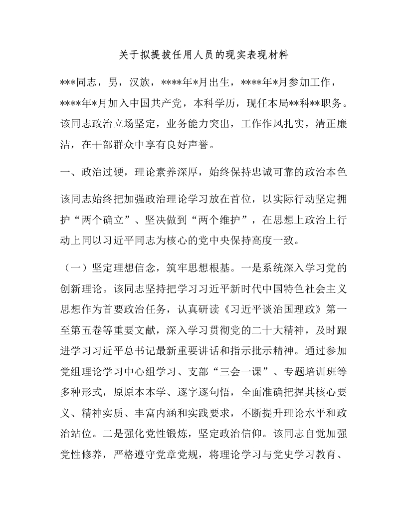 首页材料汇编综合材料关于拟提拔任用人员的现实表现材料