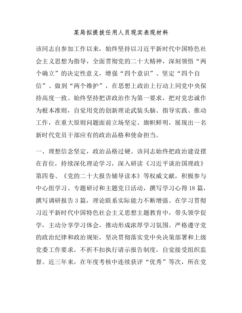 某局拟提拔任用人员现实表现材料