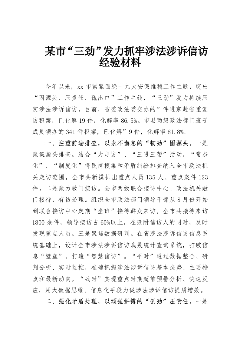 某市“三劲”发力抓牢涉法涉诉信访经验材料