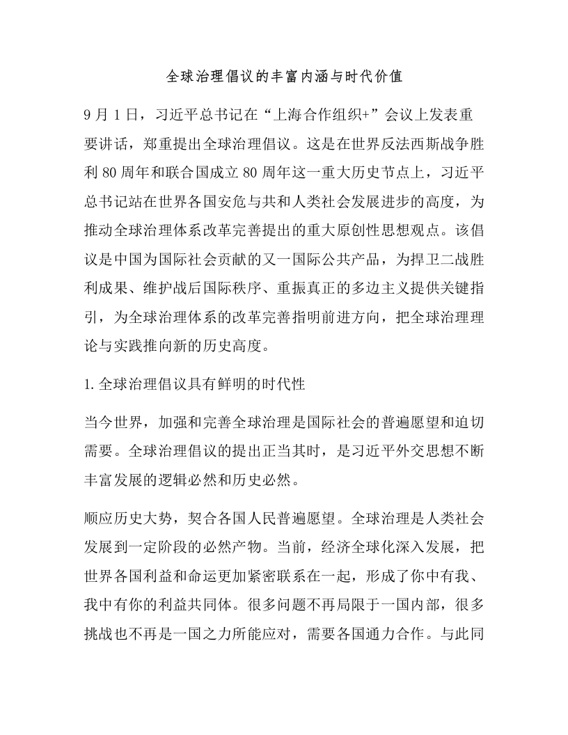 全球治理倡议的丰富内涵与时代价值