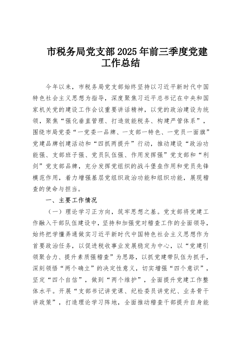 首页党建专栏党建党课市税务局党支部2025年前三季度党建工作总结