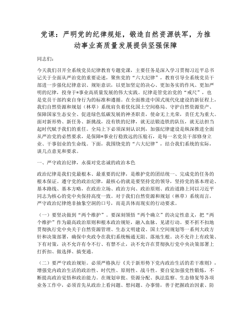 党课:严明党的纪律规矩,锻造自然资源铁军,为推动事业高质量发展提供坚强保障