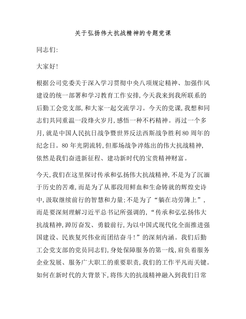 首页党建专栏党课讲稿关于弘扬伟大抗战精神的专题党课